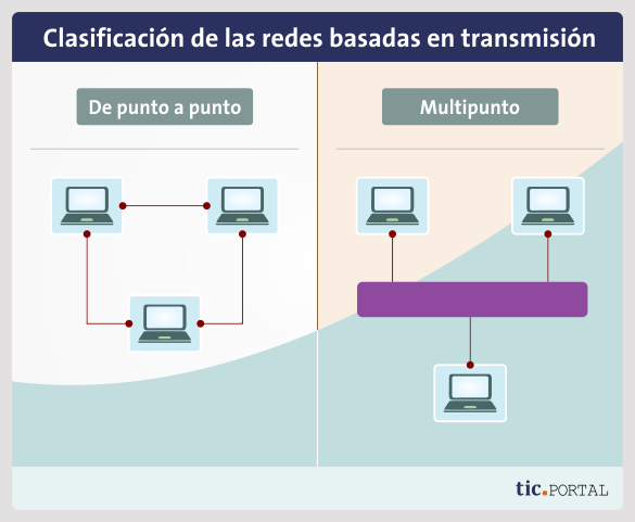 Esta clasificación se centra en la forma en la que se transmite la información entre los nodos. Esta clasificación se divide en 2 grupos: